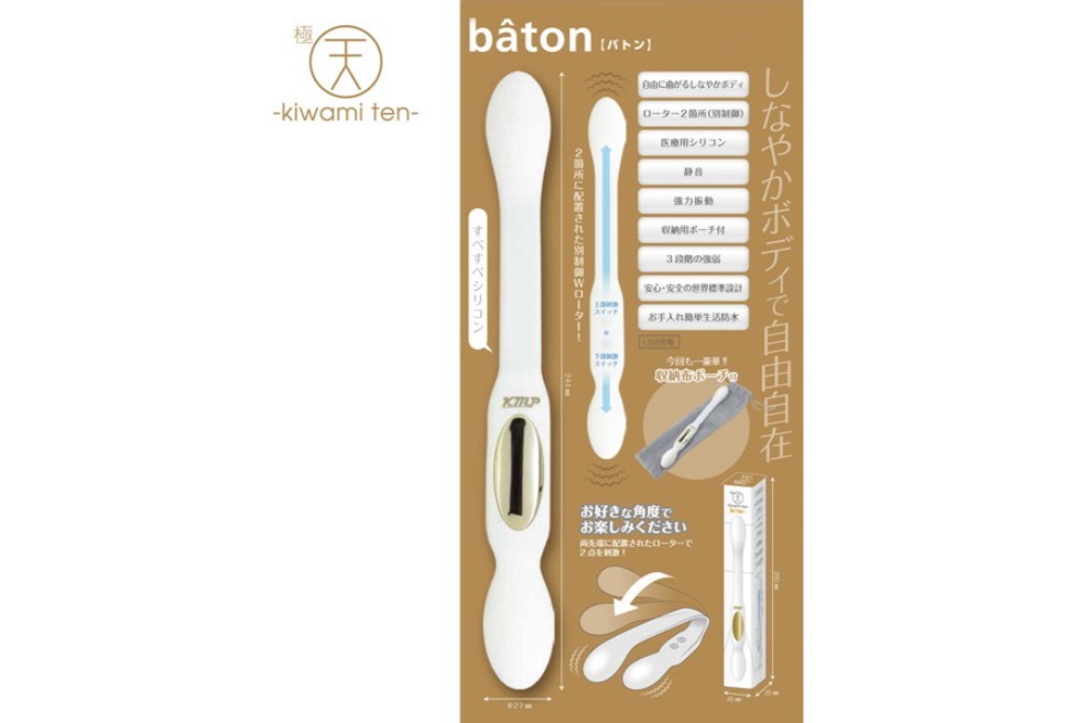 上下の先端に強力モーターが内蔵された細長いスティックタイプの双頭バイブレータションローターです。 円柱のように見えますが、横から見ると平べったいボディをしているデザインで、両方の先端がぷっくりと膨らんでいる仕様になっています。 医療レベルの安心シリコン素材でコーティングされたボディの表面は、サラサラした触り心地のマット加工も施されています。 しなやかに曲がるボディなので、片方の先端の振動をそれぞれ楽しんだり、ヴァギナとアナルに挿入しながら楽しんだりとお好みの楽しみ方が可能です。 また、ダブルモーターはそれぞれ個別に操作可能だから、異なる振動を同時に味わえちゃいます。