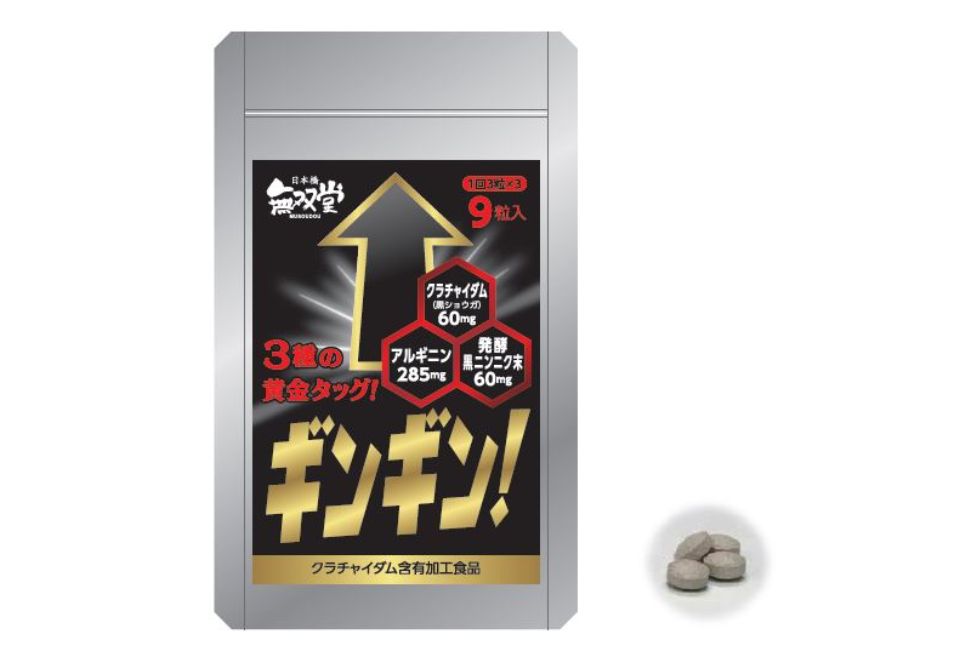 原材料名:クラチャイダム(黒ショウガ)末、発酵黒ニンニク末、ソフォン末、ムクナ末、マカ末、アカガウクルア末、デキストリン、エゾウコギエキス末、アメリカ人参末、セレン含有酵母、韮種末、ウミヘビ末、赤マムシ末、冬虫夏草菌糸体末、ジンジャーエキス末、フィッシュコラーゲン、蟻末、スッポンエキス末、マカエキス末、タツノオトシゴエキス末/ビタミンB1、ビタミンB6、ビタミンE、ビタミンB12、L-アルギニン、結晶セルロース、ショ糖脂肪酸エステル