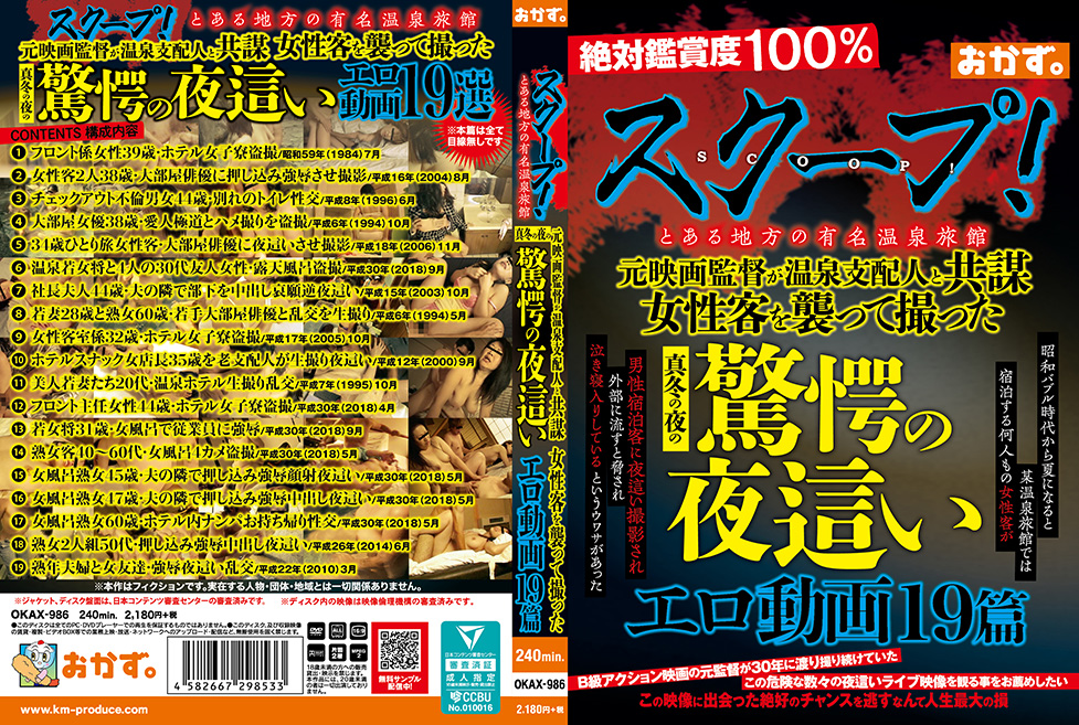 女性客を襲って撮った夜這いや女性客の部屋や仲居の部屋に押し込み凌辱など、今も隠れた人気のスワピッングマニア誌主催の温泉乱交など好き者の元映画監督のコレクションの数々から真冬バージョンを公開‼温泉ホテルのフロント係の女性や従業員女子寮の盗撮、色香溢れる2人の熟女客を見そめた元監督が大部屋俳優に押し込み凌辱させ、撮影した極めつけ画像。温泉若女将と4人の30代友人女性のエロい露天風呂盗撮、ホテル内でナンパした60代美熟女客をお持ち帰り性交などなど、アッと驚く温泉女性客やエロ可愛いい女性従業員の恥辱の盗撮画像が満載の第2弾!貴方はこれを観ないと絶対に損をする!見逃さないで欲しい‼‼